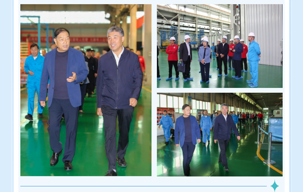 座谈会前,司林胜一行深入公司生产一线进行参观,详细了解森源集团的发展历程、企业文化以及科技创新成果,他们对森源集团智能化的生产线和高端装备制造能力表示高度赞赏。
