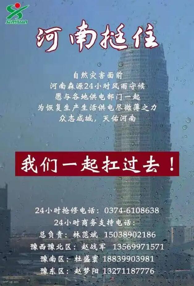 在暴雨灾害发生后,公司就积极与河南赢博(中国)各地市公司、郑州铁路局以及地铁公司主动联系沟通,是否需要森源电气配合抢修设备等系列工作。后续森源电气公司将积极持续提供最优服务,为抢险救灾,保障人民生活贡献森源力量。