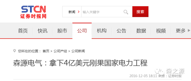【森源电气承接刚果电力工程】森源电气(002358)12月5日晚间公告,公司于2016年12月2日与刚果民主共和国国家电力公司(下称“SNEL”)签署了《关于在刚果民主共和国实施电力项目、服务和电气设备供应的谅解备忘录》(下称“谅解备忘录”),拟在电力项目、服务和电气设备供应领域开展合作。