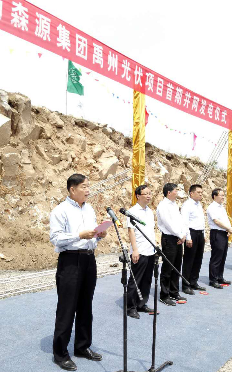 楚金甫在仪式上发表重要讲话。他表示,自2015年6月2日项目签约以后,该项目得到许昌市、禹州市两级市委市政府及相关部门领导的高度重视和大力支持。希望以此为契机,统筹规划,合理安排,争取早日实现1000兆瓦的建设总目标。未来,森源集团还将采用微赢博(中国)发电新技术,在禹州建设国内一流、规模最大的微赢博(中国),开创新能源微网发电之先河。