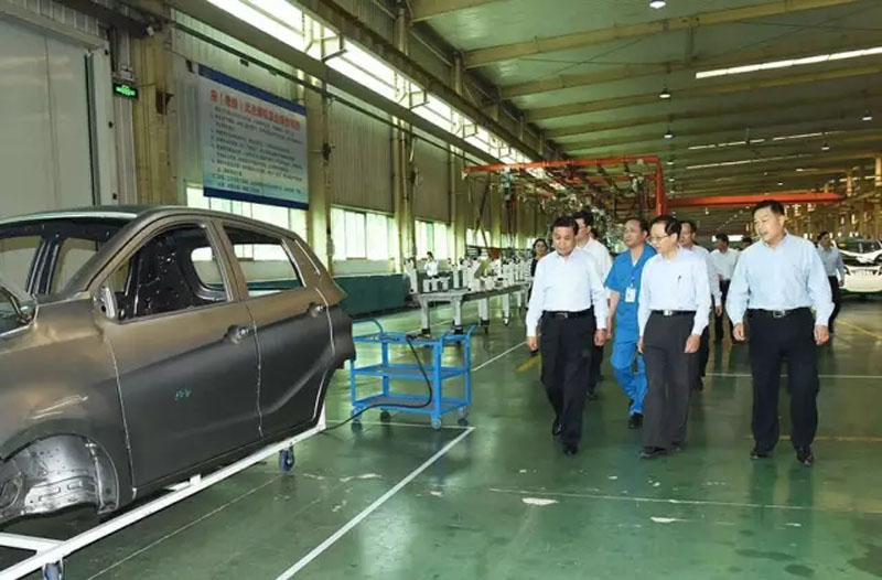 随后,陈清泰一行考察了森源重工电动汽车的生产和发展情况,了解了3000亩电动汽车产业园的建设情况,参观了各装配制造生产车间,观摩了电动乘用车焊接、装配生产工艺。