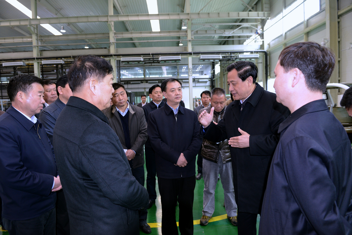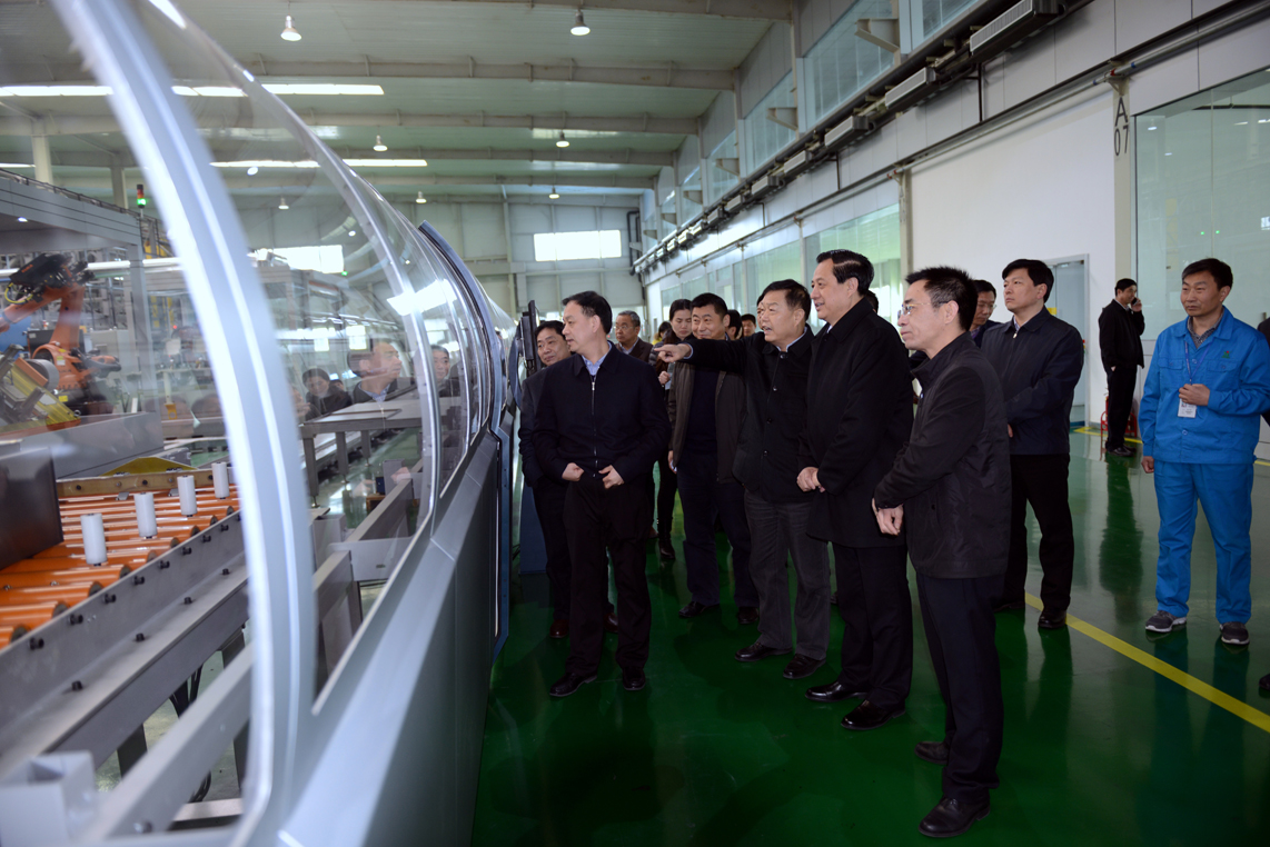 森源集团董事局主席、总裁楚金甫向王书记一行汇报了电气二期厂区建设生产情况和中关村清华科技园森源电动汽车技术研究院建设情况,并现场介绍了公司新研发的无人机、防暴警务车辆、城市环卫车辆等高科技产品的优越性能。在了解到公司最新引进了德国、意大利先进的机器人集成制造装备和在北京成立“两部”、“两院”,吸引清华大学人才增强公司电动汽车研发实力后,王树山对森源集团先进的生产制造能力和蓬勃发展的势头给予了高度评价。